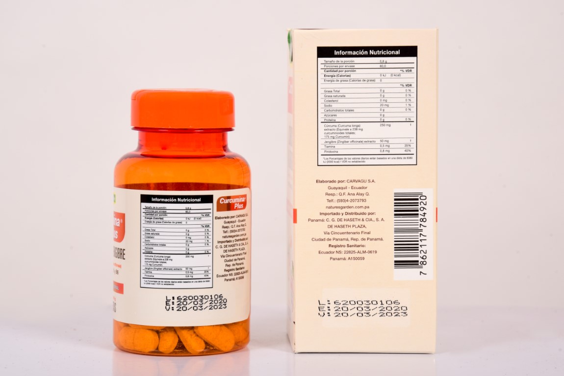Contiene:  cúrcuma, jengibre, vitamina B1 y vitamina B6