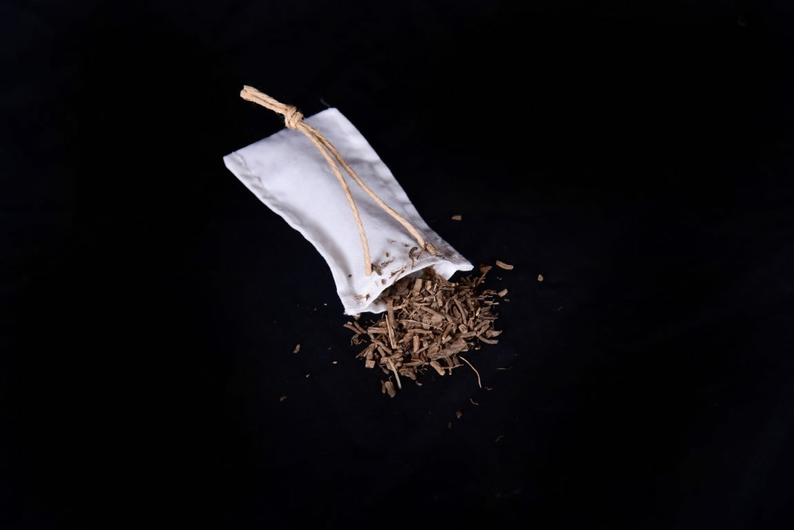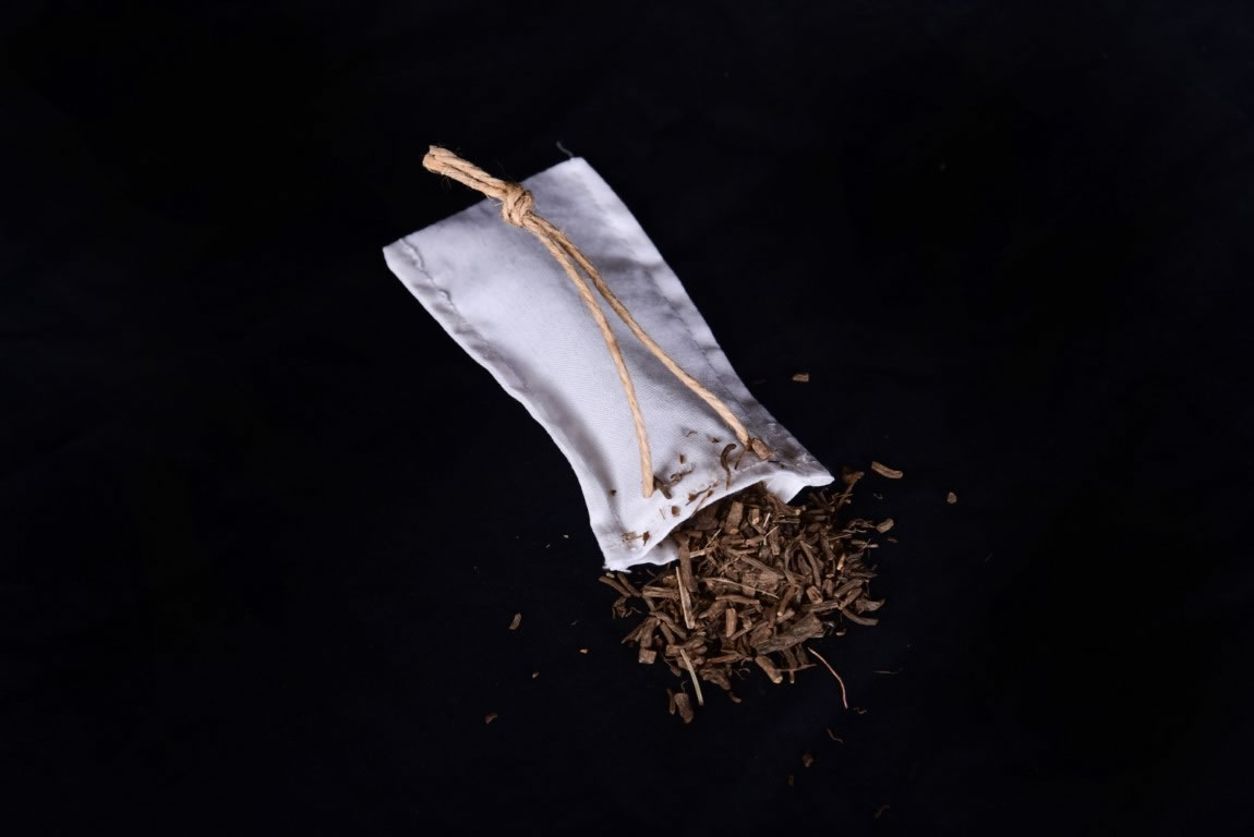 • Tiene un hilo de hemp para amarrar la bolsita e impedir que las hojas se salgan.
