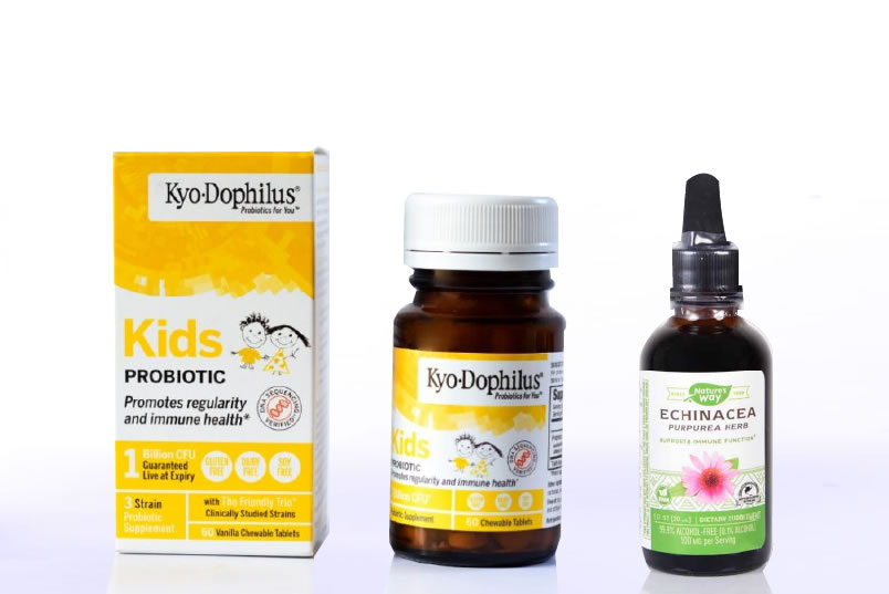 1. Kyodophilus: pastillas masticables con mezcla probiótica de tres cepas con 1.5 mil millones de bacterias vivas por tableta, porque el 80% de nuestras defensas están en el intestino, ahí levantamos un ejército que nos defienda con los probióticos.